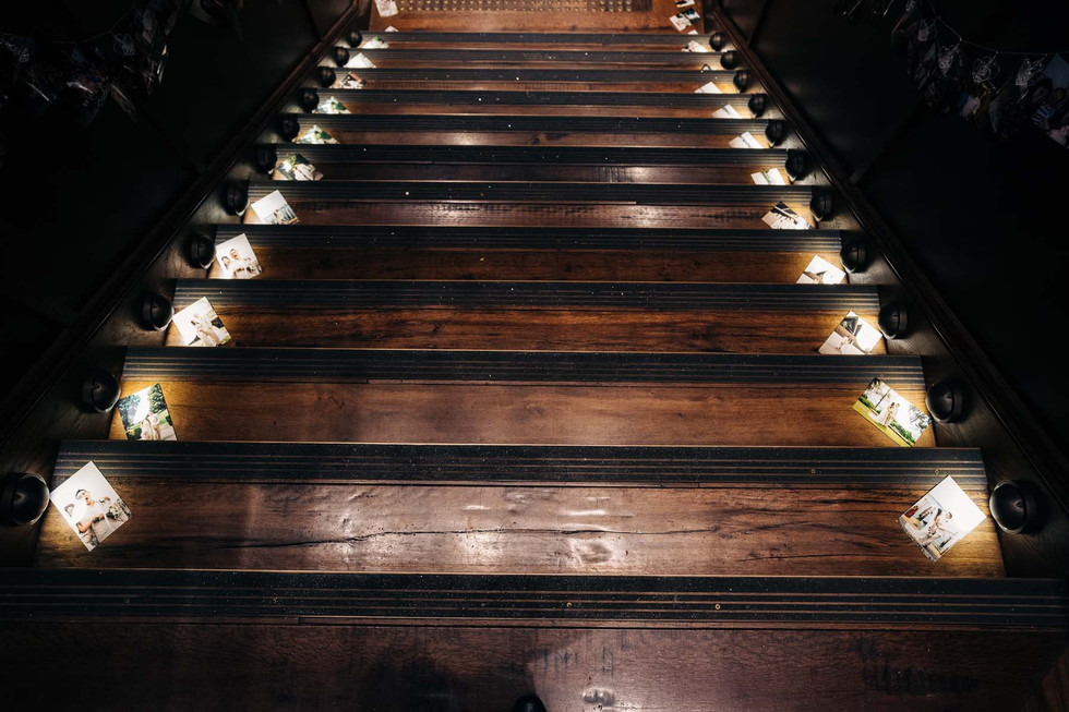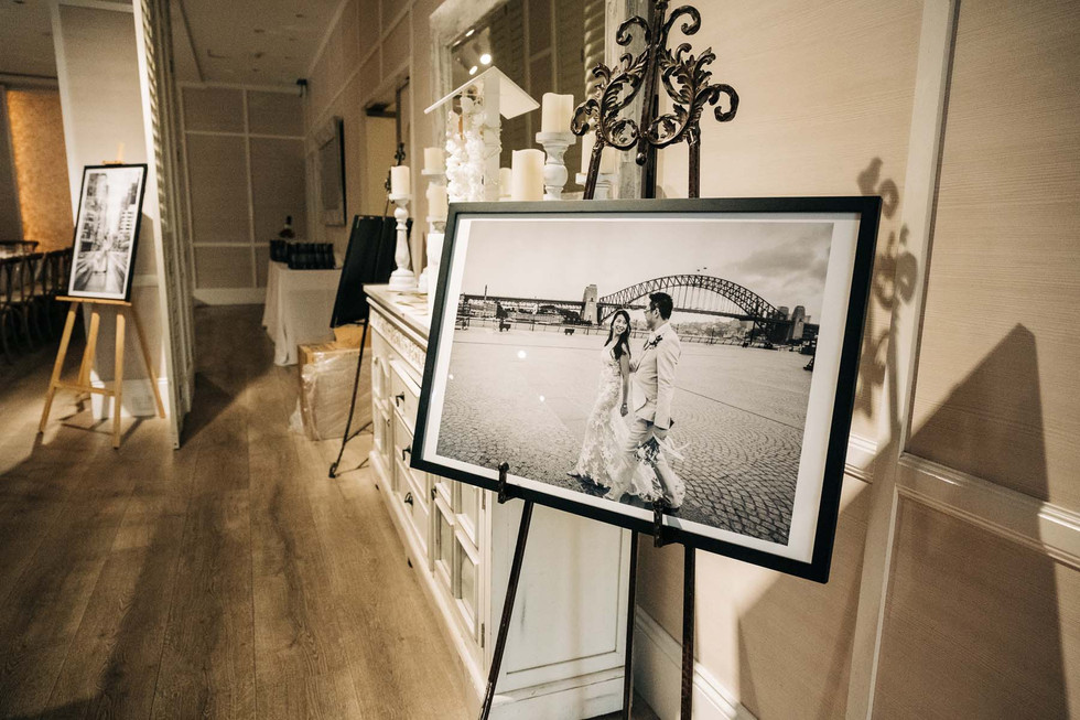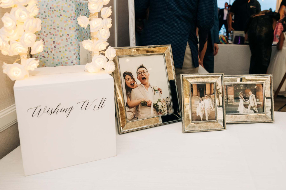 Loved that the couple used their photos from their first wedding as framed prints and scatter prints to decorate the venue too!