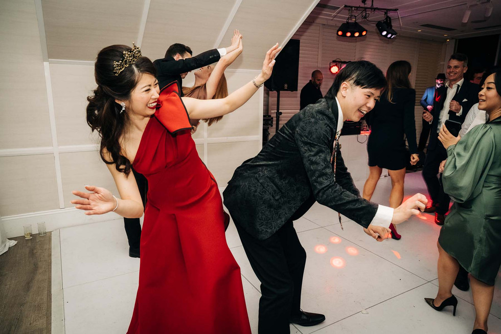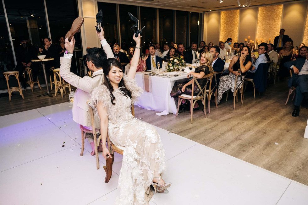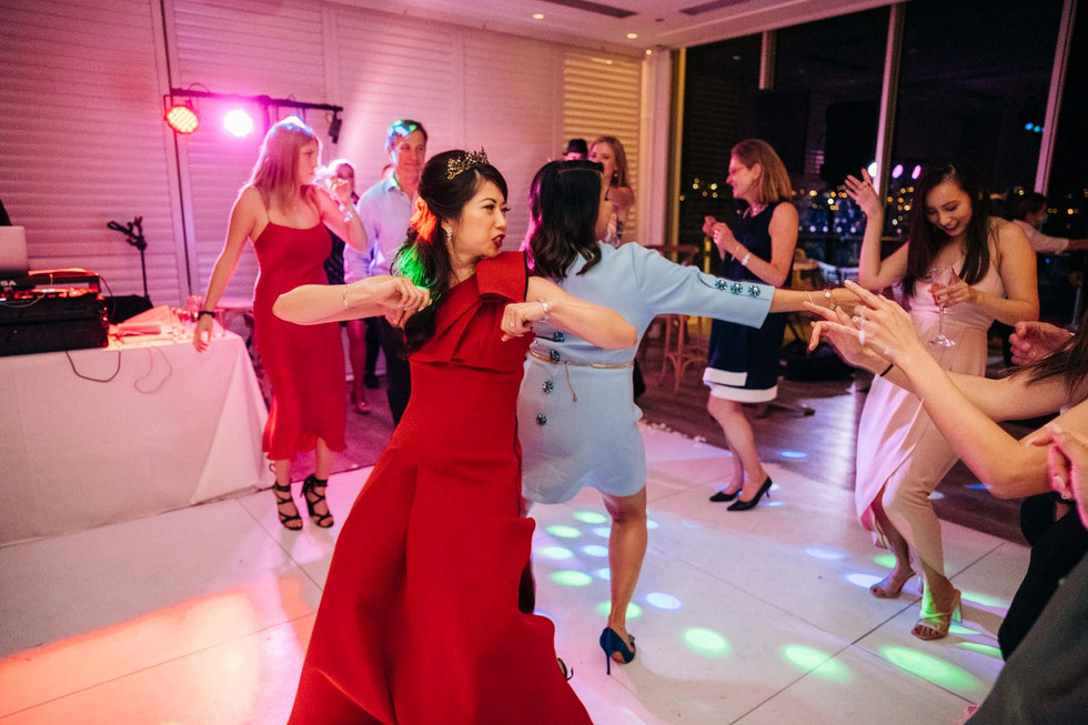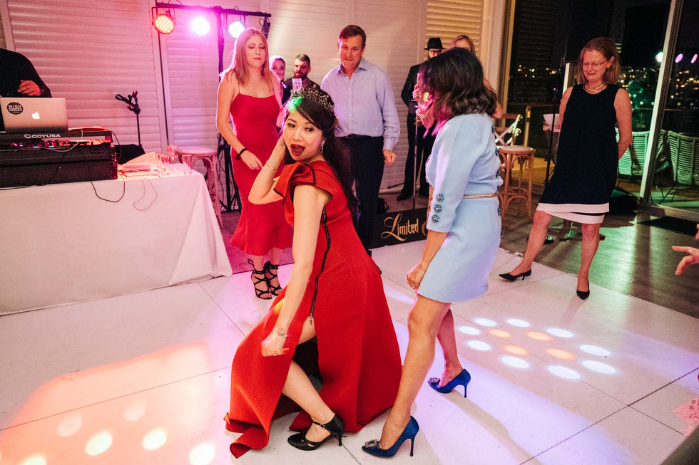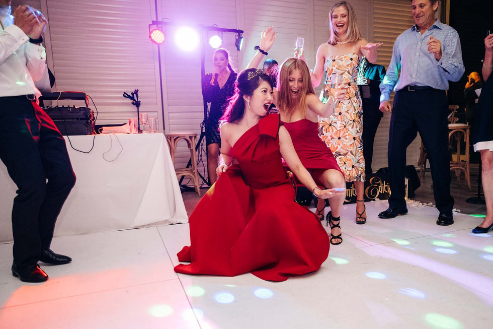 Camilla & Adler had their wedding with their guests in attendance at the RMYC in Point Piper. The vibe was definitely more party and enjoying time with family & friends. After their ceremony, the couple went straight into cocktails and mingling. We had already done their couples photos after their first wedding, so it was great to shift straight into the reception with no break for photos. Silver lining was that Camilla got to wear her stunning wedding dress twice! A clever feather shrug changed up Camilla's wedding dress for the reception and that red number was a stunner for their first dance. Champers flowed all night and the dancing went off.