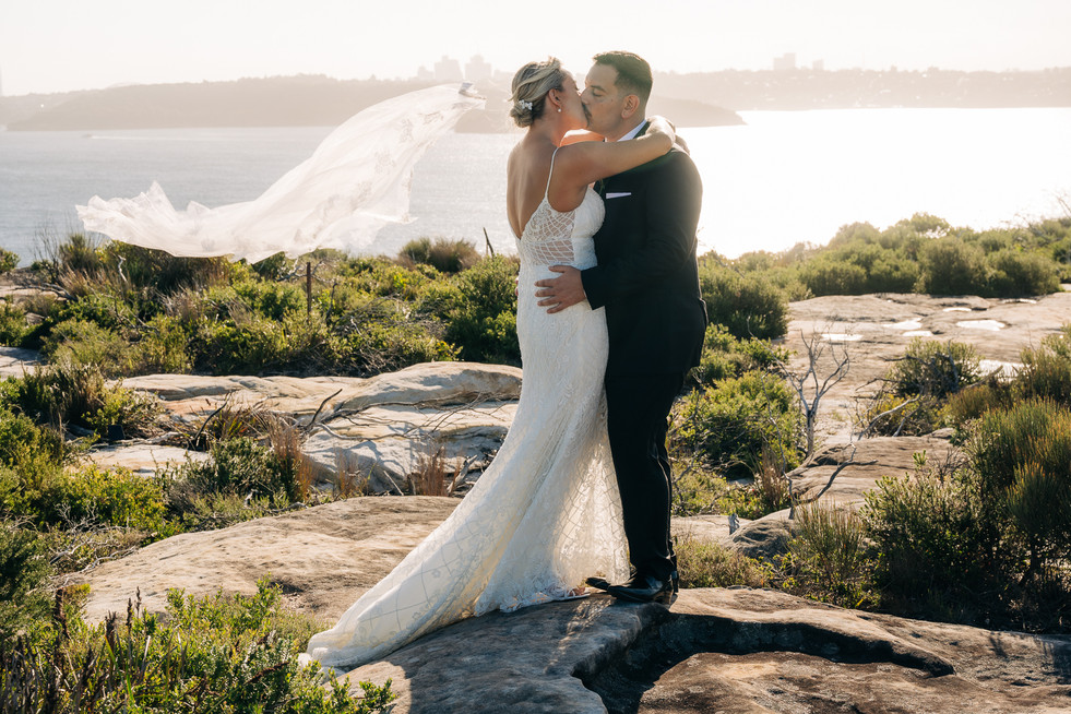 From getting ready at Jasmine's grandma's place, to the Orthodox Greek wedding ceremony, to the crazy moments at North Head. We tried a veil toss but the wind caught it and sent it flying towards the ocean. My heart stopped, but thankfully it fell short and got snagged in a bush.